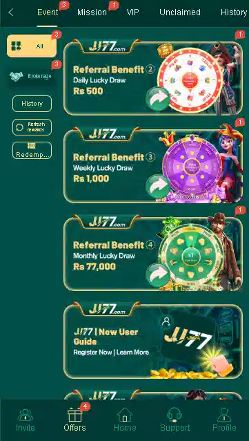 JJ77 encourages community growth through its invite system. By referring friends, you earn extra bonuses whenever they register and play. In addition the more people you invite, the more passive rewards you can generate, creating a simple way to increase income without additional effort.